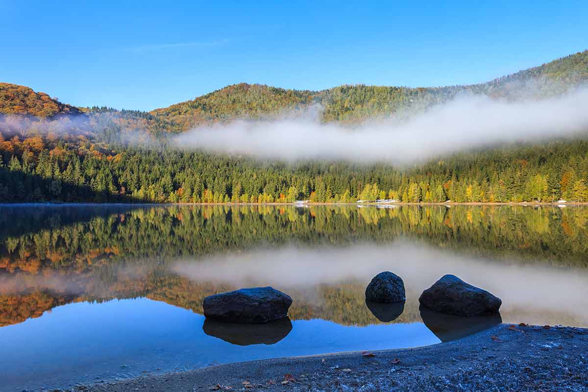 Located in the volcanic crater of the volcano named Ciomatu Mare of the Eastern Carpathians, near Tușnad in the Natural Reserve of Mohoș, Harghita County.
